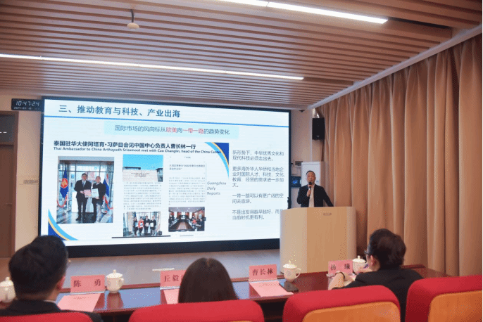签约仪式后,泰方代表举行了学生和教师学历提升分享介绍,就合作的具体实施细节进行深入交流与探讨。广州市大湾区现代产业发展研究院执行院长曹长林表示将大力促进两校合作与交流。