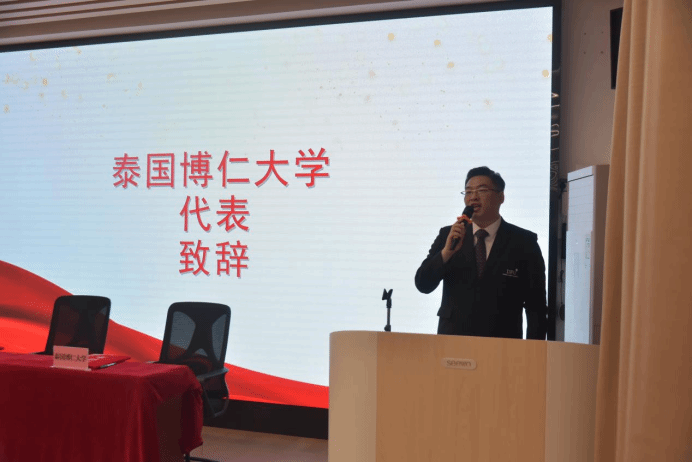 泰国博仁大学中国事务处处长陈勇从泰国博仁大学概况👨‍🎤👦、培养模式及专业进行了介绍,表达了对合作前景的期待与信心。双方正式签署了合作协议,共同承诺在多个领域展开深入合作🪑♉️。该协议涵盖了诸多方面,包括但不限于交换学生、教师和工作人员🪨、联合研究活动和刊物、学术会议和研讨会、学术资料和信息交流等领域,为双方未来的合作提供了广阔的空间和丰富的内容。