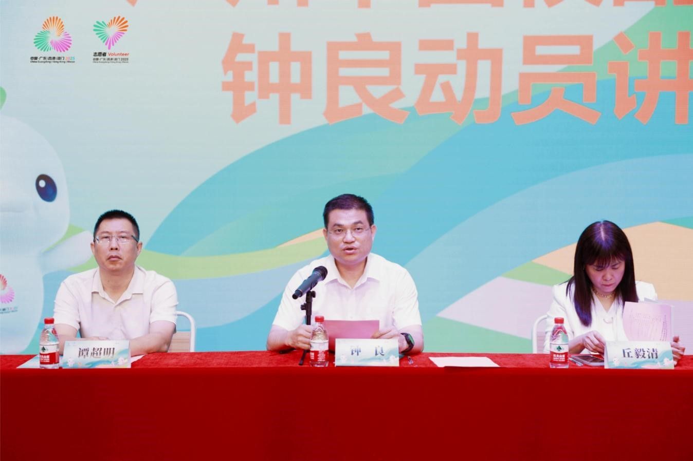 为切实保障第十五届全国运动会及残特奥会广州赛区志愿服务工作的高质量开展,6月7日至8日🥲,由十五运会和残特奥会广州赛区执委会志愿者部和学校联合主办的通用培训在学校师德楼报告厅举行。学校党委书记、行政负责人丘毅清,副校长龙辉,广州市团校副校长钟良出席了开班式,513名预录用志愿者参加培训👩🏻‍🍳。
