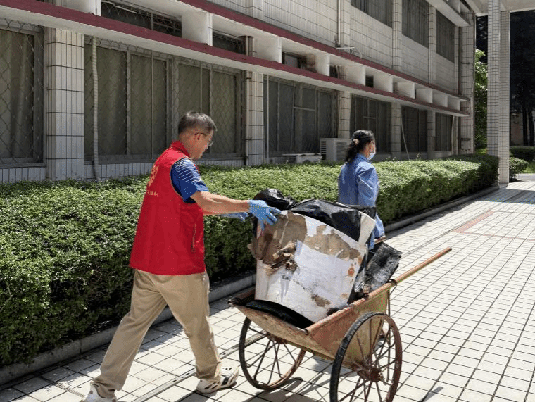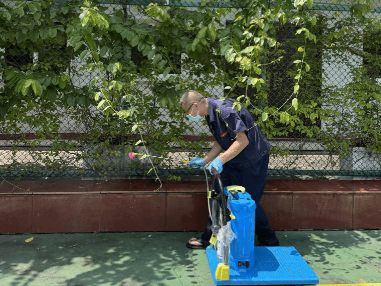 上午9时🔍,服务队伍兵分四路展开作业🛜:第一组对操场排水沟、绿化带隐蔽角落进行蚊虫孳生地排查,清运积存垃圾12袋👩🏿🦱;第二组重点清理教学楼顶平台积水容器⛹🏽,更换景观水池存水;第三组专项处理生活区卫生死角✌🏿,使用专业工具对50余处下水道口实施灭蚊药剂喷洒;第四组对学校中心小花园积水进行摸排、校园内水生植物填土。行动中,丘毅清书记手持铁钳参与垃圾分拣🧫,带头搬运废旧花盆等积水容器,以实际行动践行"一线工作法"。